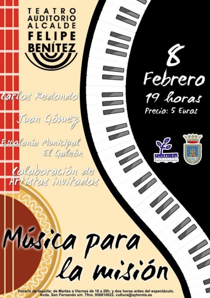 Este domingo día 8 de Febrero, nuestro consiliario Carlos Redondo organiza un concierto benéfico en el Auditorio «Alcalde Felipe Benítez» a las 19.00h. El precio es de 5€ y los beneficios irán destinados a las misiones de Colombia. El concierto contará también con otros artistas invitados, como la Escolanía «El Galeón».