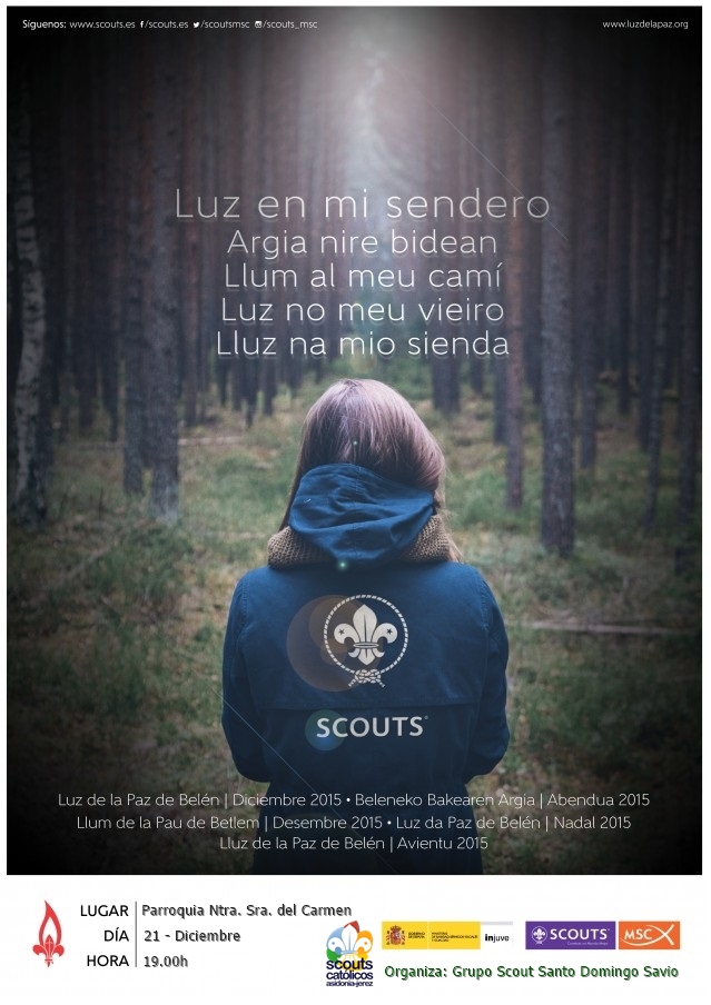 Para ello, nos veremos todas las ramas y todas las familias que queráis acompañarnos en la Parroquia Ntra. Sra. del Carmen a las 18.30h el lunes 21 hasta las 20.00h aproximadamente. No os olvidéis del uniforme y la pañoleta. Si queréis llevaros la Luz a casa, traeros una vela, un candil o un quinqué.