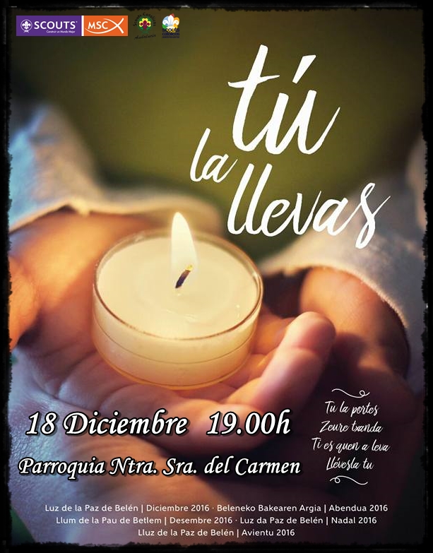 Por supuesto, estáis todos los padres/madres y familiares invitados. Si queréis llevaros la Luz a vuestras casas no olvidéis traer una vela, un candil, un quinqué o algún elemento para trasportarla, para que esté presente en vuestros hogares durante estas navidades.