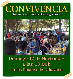 Este domingo día 12 de noviembre celebraremos la tradicional Convivencia de Inicio de Curso. Será a partir de las 13.00h en el pinar de Echavarri, a modo de conclusión de la Acampada de Inauguración que celebramos desde hoy viernes.
