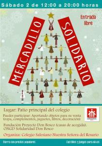 Este sábado día 2 de diciembre, el Colegio Salesianos vuelve a organizar un mercadillo solidario desde las 12.00h hasta las 20.00h en el patio del colegio para recaudar fondos en colaboración con la Fundación Proyecto Don Bosco y la ONGD Solidaridad Don Bosco.