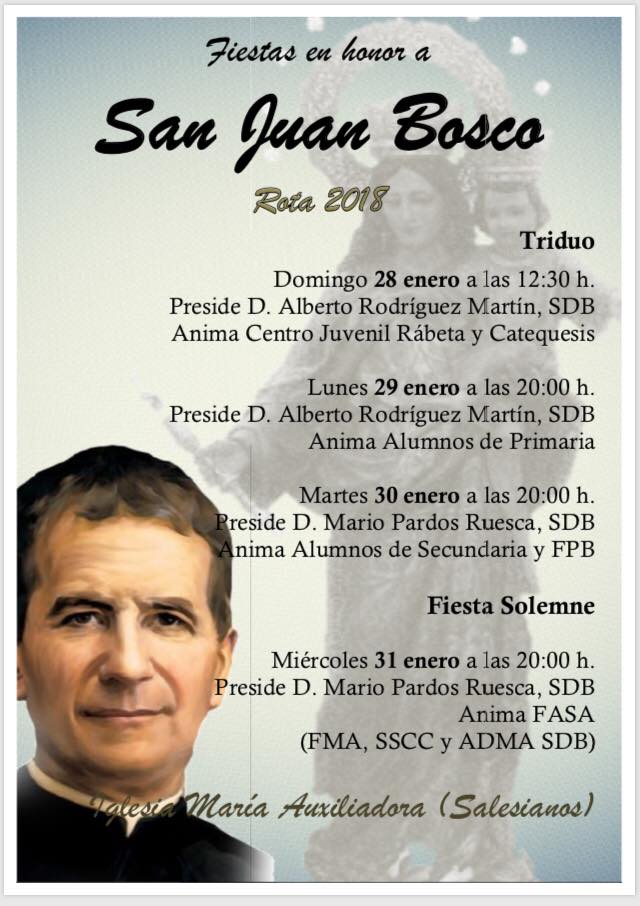 Como cada mes de Enero, nos disponemos a celebrar la festividad de San Juan Bosco con la casa salesiana que nos acoge en el Colegio participando en diversas actividades que se organizan.
