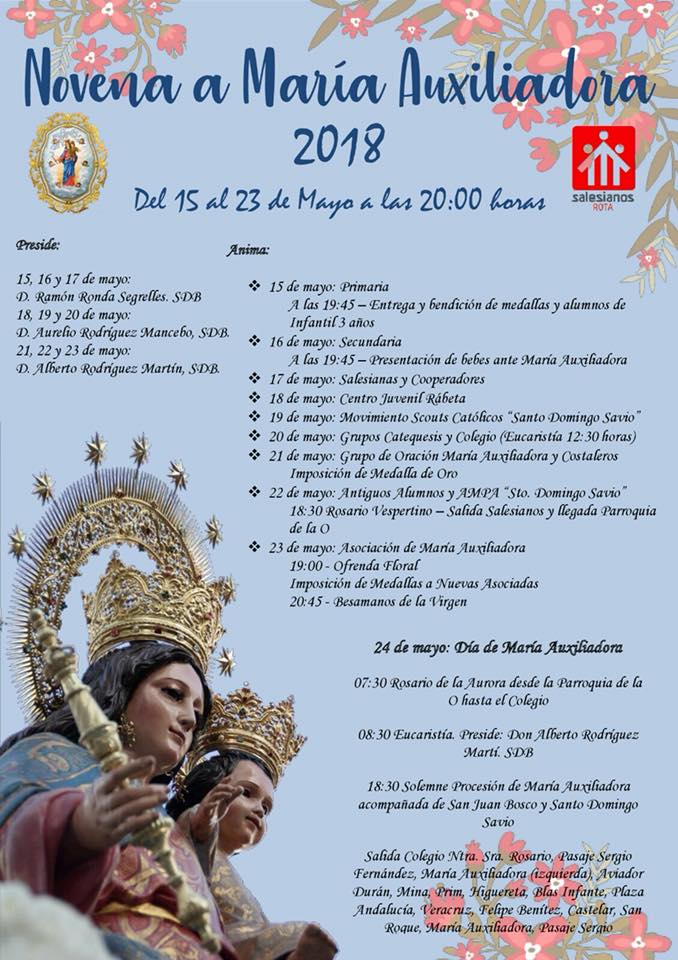 El próximo jueves día 24 de mayo participaremos en la procesión de María Auxiliadora, San Juan Bosco y Santo Domingo Savio por las calles de nuestra localidad, como cada año, acompañando a la Casa Salesiana. Para ello nos veremos en el Colegio Salesianos a las 18.00h con uniforme completo (camisa, pantalón vaquero largo, botas y pañoleta). La recogida de los niños/as será en el Colegio en torno a las 21.30h.