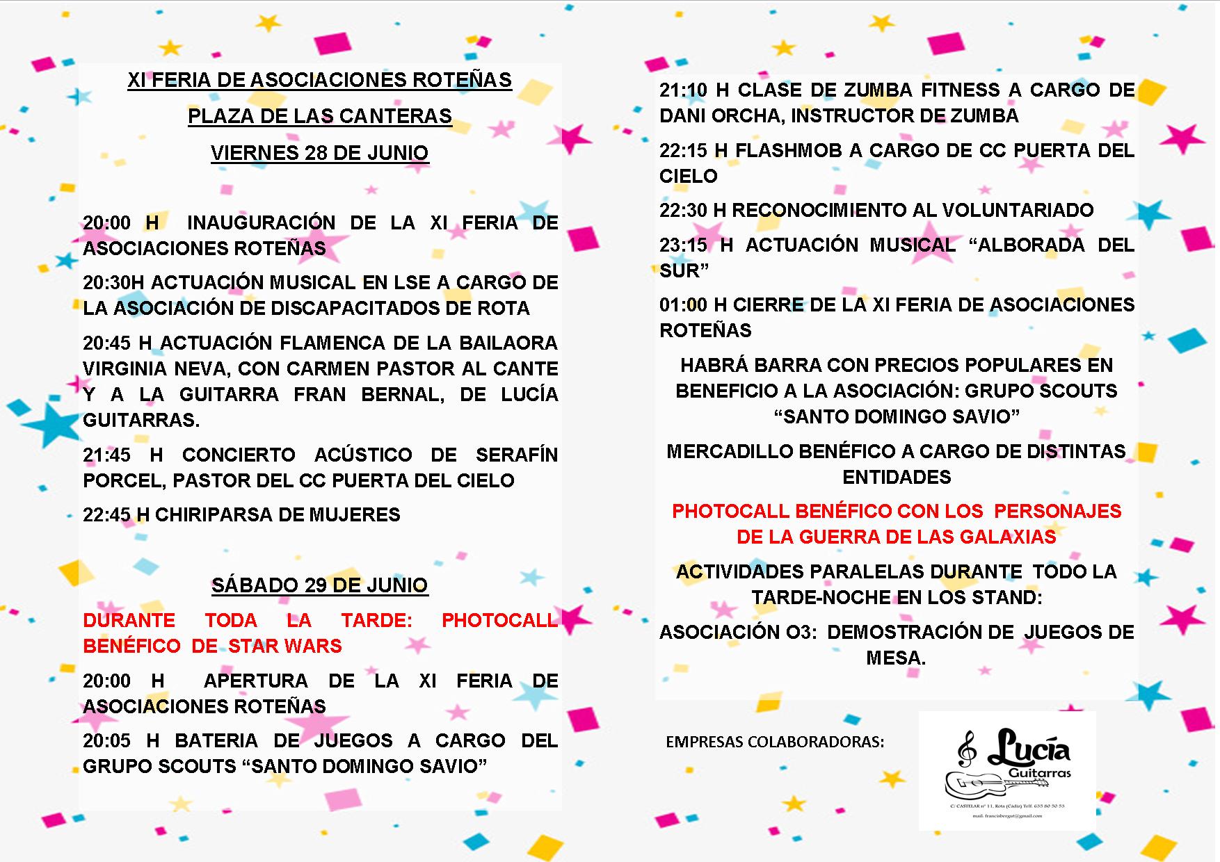 Este fin de semana, los días 28 y 29 de junio, tendrá lugar la XI Feria de Asociaciones en la Plaza de las Canteras, organizada por el Centro Local de Voluntariado (CLOVOR), del que nosotros formamos parte. Como cada año, contará con stands de todas las asociaciones, que nos mostrarán las acciones que realizan, así como una programación con diversas actividades para ambos días. En este enlace podéis encontrar una información más detallada del evento.