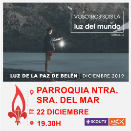 El próximo domingo día 22 de diciembre realizaremos el reparto de la Luz de la Paz de Belén en nuestra localidad. Será en una eucaristía en la Parroquia Ntra. Sra. del Mar.