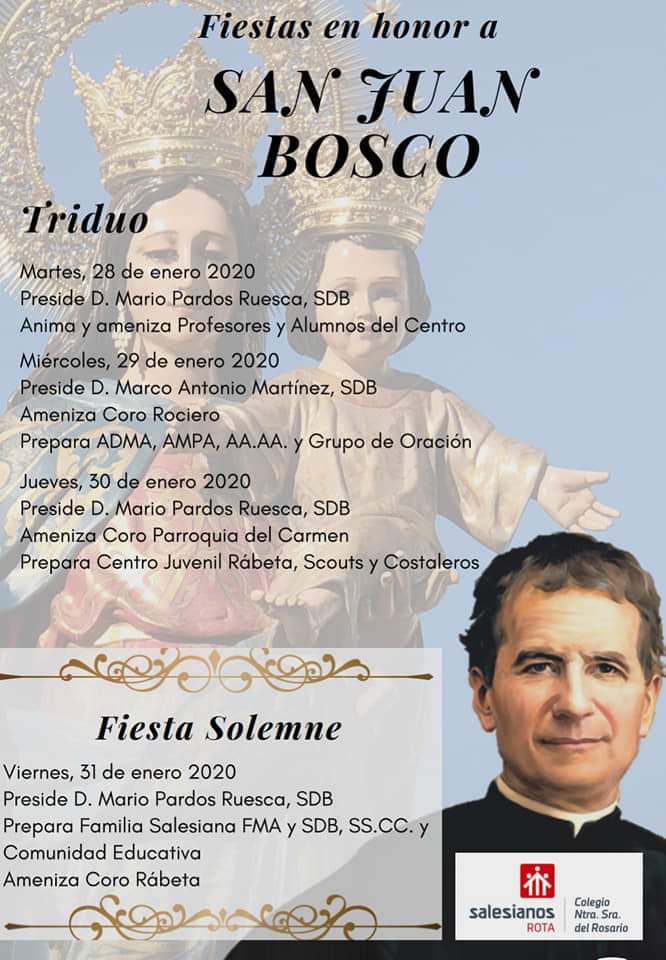 En estas fechas, la casa salesiana se prepara para celebrar la festividad de San Juan Bosco. Como cada año, nuestro Grupo participará en la eucaristía uno de los días del triduo.