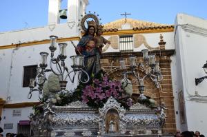 El itinerario de la procesión será el siguiente: salida Colegio Ntra. Sra. del Rosario (18.30h), Pasaje Sergio Fernández, María Auxiliadora (Izqda.), Plaza San Roque, Aviador Durán, Mina, Prim (Dcha.), Higuereta (Izqda.), Blas Infante, Plaza de Andalucía, Veracruz, Felipe Benítez, Castelar, Plaza San Roque, María Auxiliadora, Pasaje Sergio Fernández, recogida Colegio Salesianos (21.30h).
