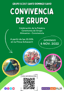 Como cada año, al finalizar la Acampada de Inauguración, vamos a realizar una Convivencia de Grupo que sirve como acercamiento entre las familias, los niños/as y los responsables y como punto de encuentro para los antiguos scouts. Tendrá lugar el próximo domingo 6 de noviembre en la Finca Echavarri a partir de las 12.00h.