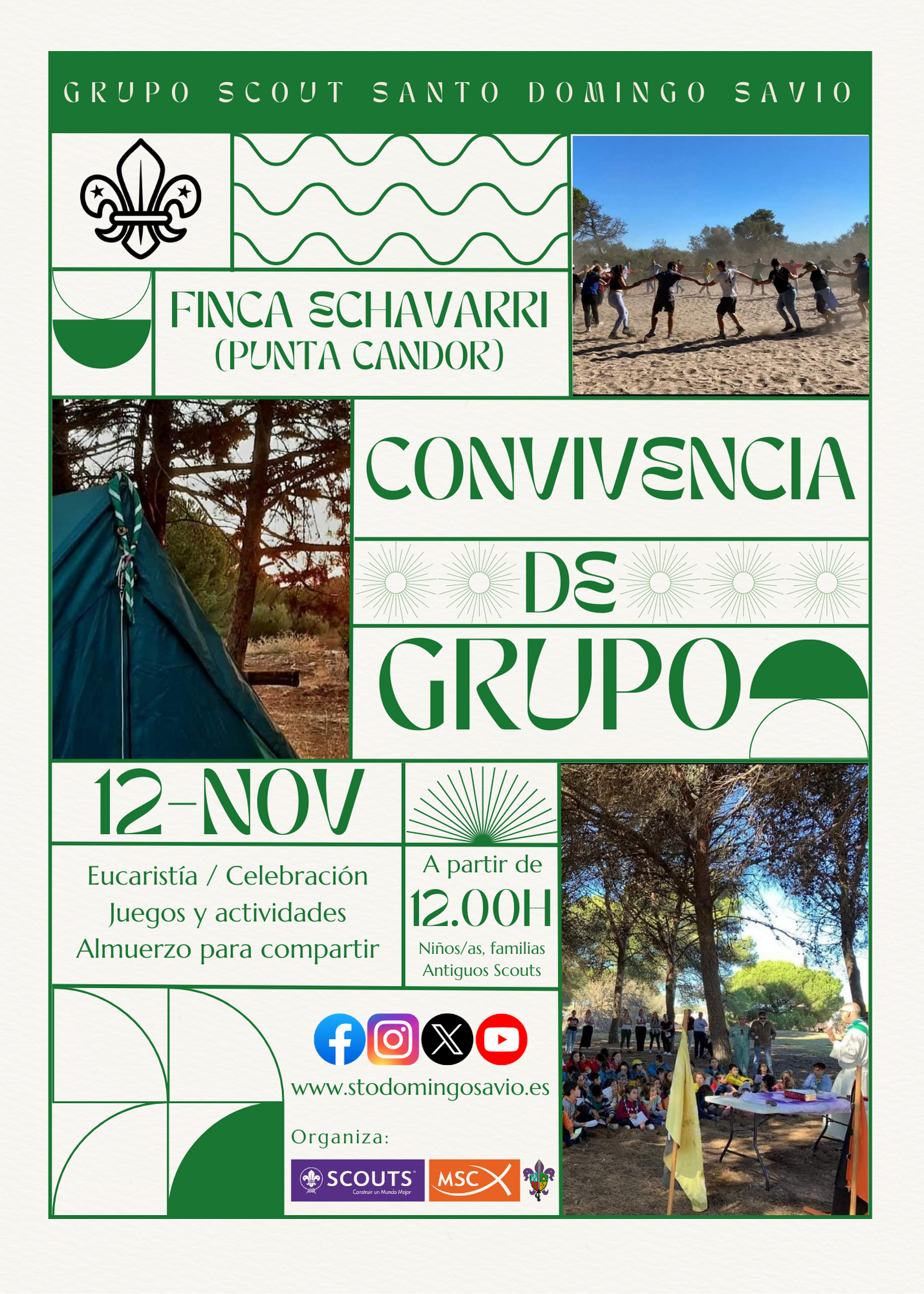 Como cada año, al finalizar la Acampada de Inauguración, vamos a realizar una Convivencia de Grupo que sirve como acercamiento entre las familias, los niños/as y los responsables y como punto de encuentro para los antiguos scouts. Tendrá lugar el próximo domingo 12 de noviembre en la Finca Echavarri a partir de las 12.00h.
