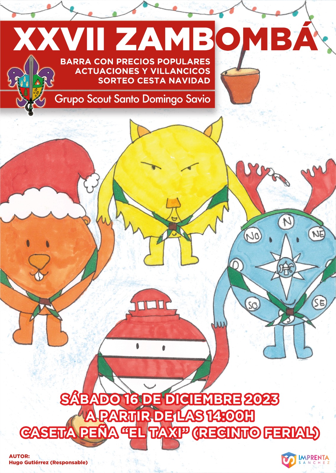 Para organizar este evento necesitamos la colaboración de todos los miembros del Grupo: los niños/as ayudarán a decorar el local, los padres y madres colaborarán aportando la comida de la barra y productos de la cesta y los responsables trabajaremos la barra y montaremos todo lo necesario.