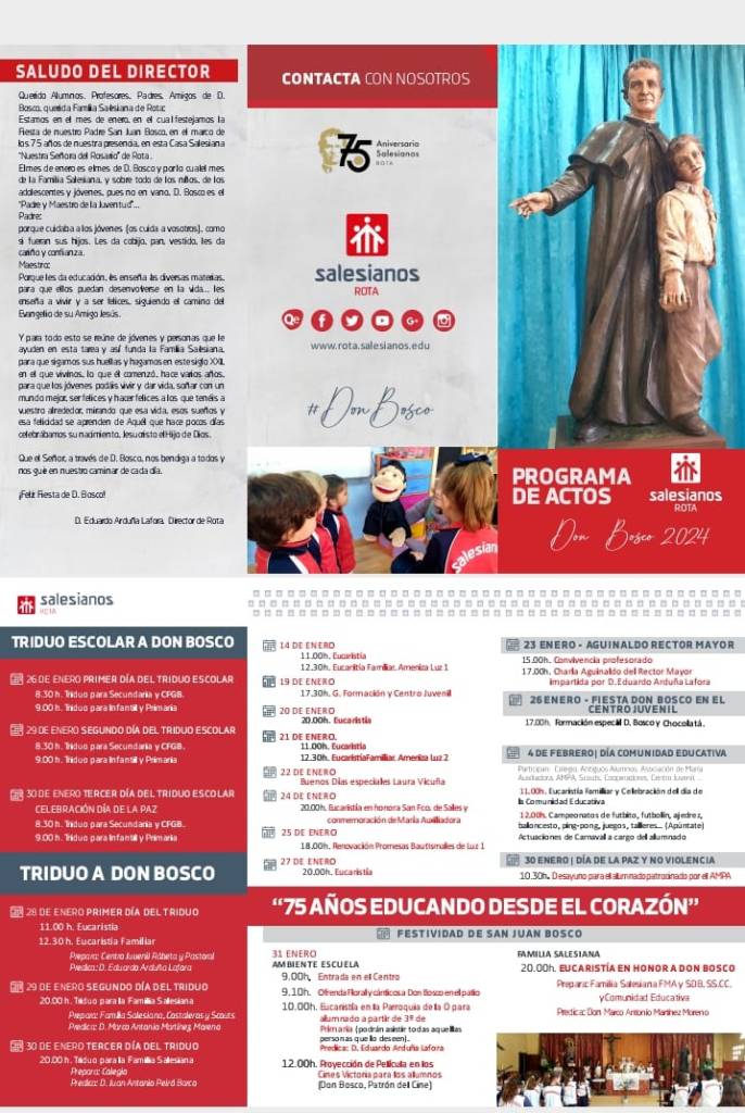 Este domingo día 4 de febrero el Colegio Salesianos celebra el Día de la Comunidad Educativa con una convivencia en torno a la figura de Don Bosco en estos días de actos por su celebración. Es un día donde nos reunimos junto a todos los ambientes de la casa: Cooperadores, Centro Juvenil, Colegio, ADMA, Antiguos Alumnos, AMPA, etc.