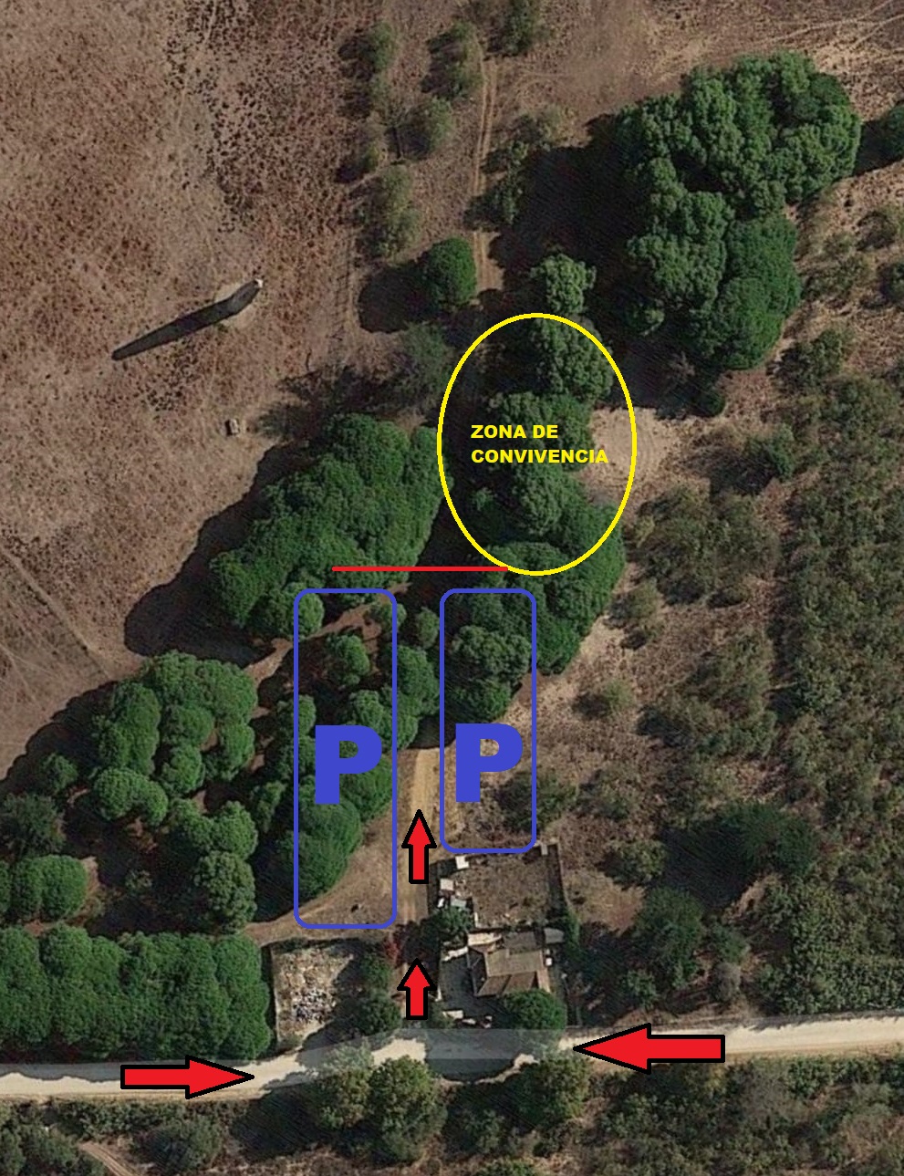 Os indicamos un mapa sobre cómo llegar al lugar y un plano de organización para el acceso. Recuerda que la puerta de la finca deberá permanecer cerrada en todo momento.