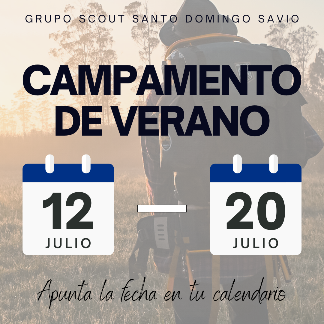 ¡Tenemos buenas noticias! Ya podemos anunciaros la fecha del próximo Campamento de Verano, que tendrá lugar entre los días 12 y 20 de julio (D.m.), para que podáis organizar vuestras vacaciones familiares y que los niños/as puedan asistir.