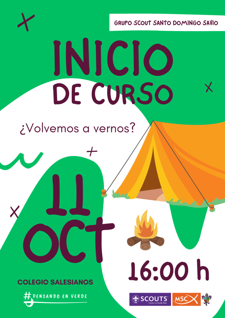 Ya quedan muy poquitos días para el comienzo de un nuevo curso que deseamos con muchas ganas e ilusión después de estas semanas de descanso durante el verano. Será el 11 de octubre, en el horario habitual de nuestras reuniones de 16.00h a 18.30h en nuestros locales del Colegio Salesianos. En este día realizaremos la tradicional gymkhana para conocernos y desvelaremos el cuadro de responsables que trabajan en cada rama este curso.