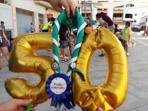 A pesar del inmenso calor, el Grupo salió a la calle para celebrar su 50º Aniversario con todos los miembros del Grupo como mejor lo sabe hacer: con mucha diversión y alegría. Realizamos un pasacalles por el centro de Rota y el paseo marítimo con música, juegos, globos. ¡Viva el follón!