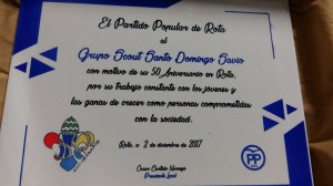 El Partido Popular, en su convivencia navideña, decidió realizar su reconocimiento anual a nuestro Grupo por los años dedicados a la educación de los más jóvenes de la localidad.